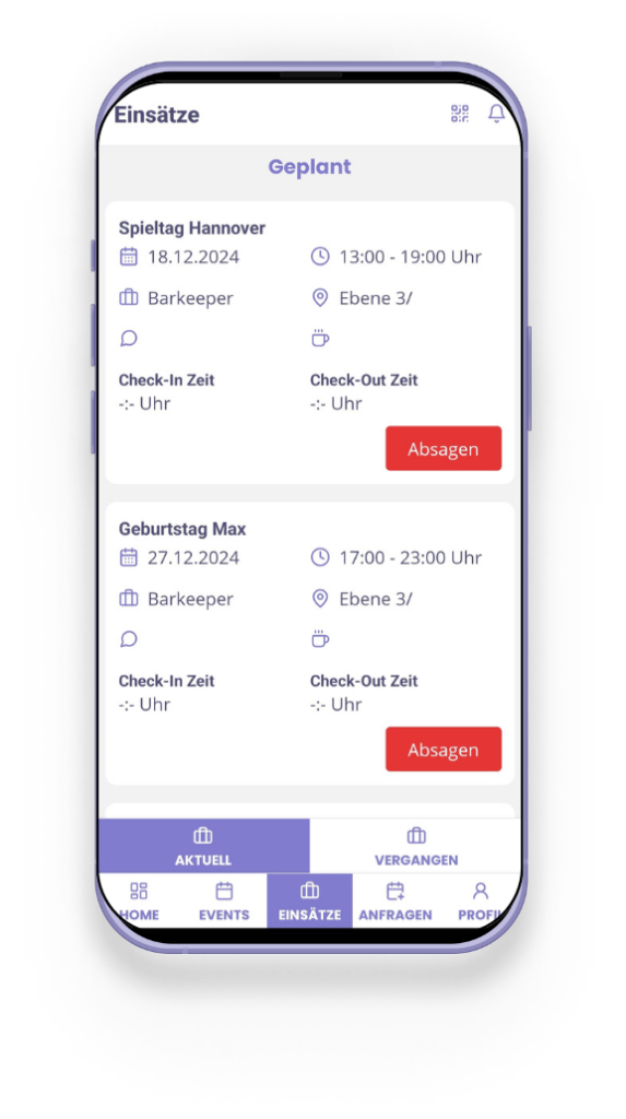 In der Gastronomie und in der Eventbranche ist der Einsatz von Fremdpersonal nicht mehr wegzudenken. Aber auch im Einzelhandel ist Arbeitnehmerüberlassung am Vormarsch. Organisiere und verwalte sowohl dein eigenes Team als auch externes Personal mühelos mit Covento. Behalte den Überblick über alle Ressourcen und nutze das integrierte Check-in-Feature, um jederzeit zu wissen, wer vor Ort ist.